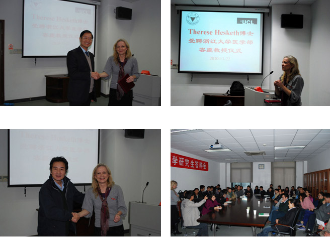 英国UCL大学(University College London)Therese Hesketh博士受聘浙江大学医学部客座教授仪式于2010年11月22日下午13:00在浙江大学社会医学与全科医学研究所会议室举行,医学部公共卫生系主任朱善宽教授主持仪式。