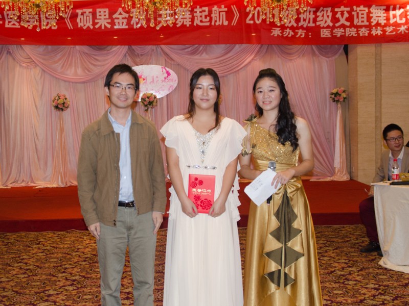 19:00许,在主持人和嘉宾热情洋溢的致辞中,舞会正式开始。10个班级代表队按照抽签顺序依次步入舞池,伴着时而悠扬时而奔放的乐音尽情舞动。华丽的服装,精致的妆容,精心编排的队形,甚至有变魔术般出现的玫瑰,无一不在向人们展示着医学生独有的艺术气质。思绪跟随舞步,时而是恋人惜别,时而又是情人相会,选手们都在用舞步诠释着内心,现场的掌声从未停歇,舞会之中穿插的自由舞环节更是精彩,一对对搭档相携走入舞场,在慢三慢四的音乐中徜徉,眸光里尽是幸福。最终被评为“舞蹈公主”王安鸽和“舞蹈王子”顾杨军的两位同学跳的更是精彩,流畅的舞步,飘逸的裙摆,温柔的笑靥为这俊男靓女的组合赢得一片掌声。特邀而至的新疆姑娘更是用她们热情奔放的舞姿将气氛推向另一个高潮。在舞会末,临床1108班的成绩脱颖而出,获得了一等奖的好成绩,为此琚莉莉同学也获得了“优秀舞编”的荣誉称号。