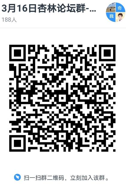 您好!杏林·名师名家论坛2020年第1期---田志刚 院士 3月16日16:00在钉钉群(群号30465934)在线交流。欢迎广大师生使用钉钉APP扫描下方二维码加群,听名师名家直播讲述“合成免疫学与NK细胞免疫治疗”,机会难得,亲们,加群加群加群!