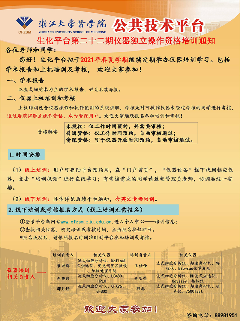 医学院生化平台第二十二期仪器独立操作资格培训通知