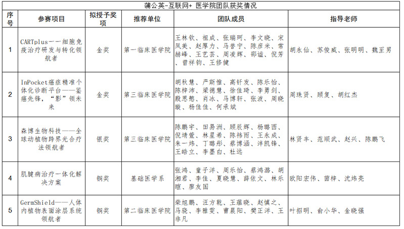 【喜报】医学院团队在我校第十五届“蒲公英”大学生创业大赛取得佳绩